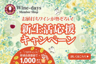 今なら新規会員登録で1000ポイント!お値打ちワインが勢ぞろい!新生活応援キャンペーンのご案内